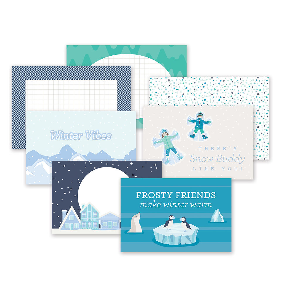 Slide-in Packs are a simple way to add some journaling or colourfully fill an empty space on a Slide-in Page. Each pack includes 24 double-sided 4x6 papers; 12 vertical and 12 horizontal unique designs.